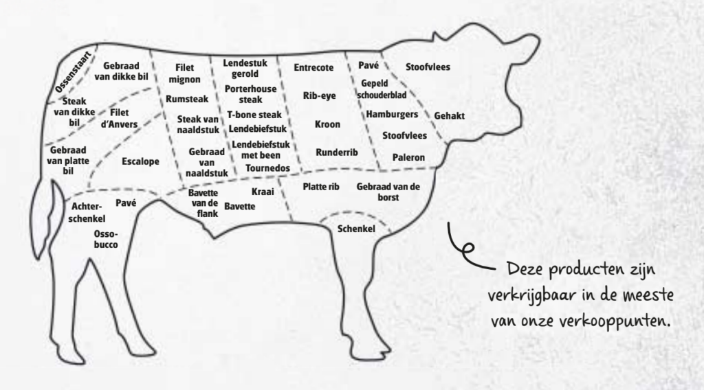 Niet voor niets is rundvlees de favoriet van de Belgische ‘vleesliefhebbers’, die tot 16 kg per jaar eten. Rijk aan smaak, met een ongeëvenaarde textuur, het heeft alles om de meest veeleisende fijnproevers tevreden te stellen. Alleen is dit uitzonderlijke rode vlees de laatste jaren onder vuur komen te liggen. Diëtisten raden nu aan om het niet meer dan twee keer per week te eten, en natuurlijk als onderdeel van een dieet dat rijk is aan fruit, groenten en andere eiwitbronnen. Reden te meer om te kiezen voor vlees van uitzonderlijke kwaliteit, dat aan al je eisen voldoet of, simpel gezegd, minder eet maar meer smaakt!