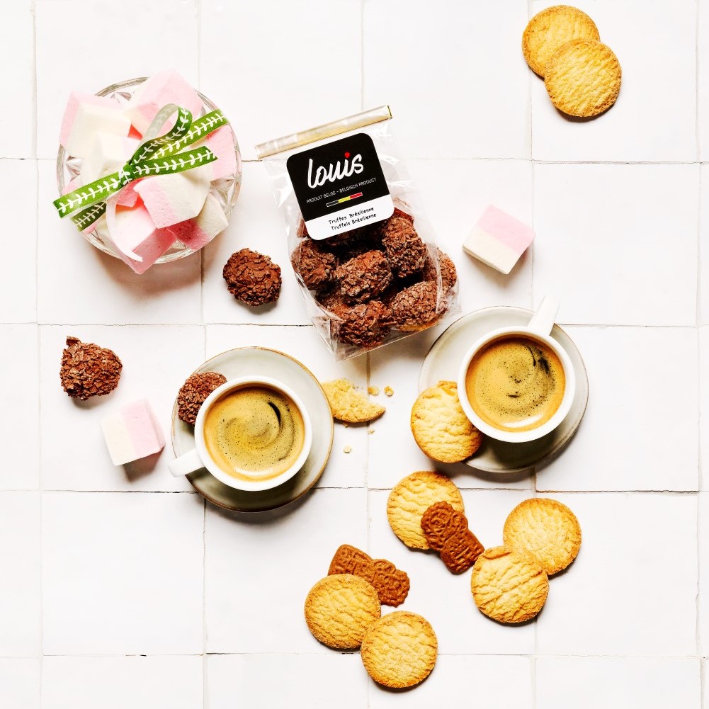 La marque louis fait la part belle aux produits de qualité: soit issus du terroir, soit sélectionnés parmi les meilleurs producteurs et transformés chez nous en Belgique. À titre d’exemple, les grains de café viennent d’Amérique latine mais sont torréfiés chez nous en Belgique ! Les olives arrivent en direct d’un producteur grecque et sont dessalées chez nous en Belgique.